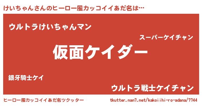 | 男性向けラノベタイトル風あだ名 | 『この素晴らしい世界にけいちゃんを!』 |