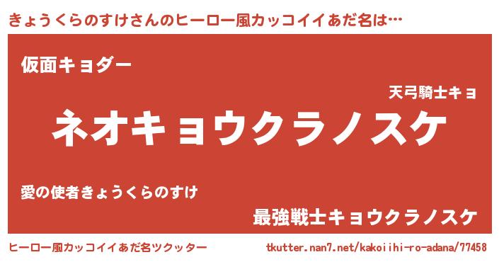 | 意味不明あだ名 | 『永久保存きょうくらのすけ』 |