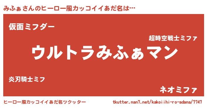 | 男性向けラノベタイトル風あだ名 | 『やはりみふぁの青春ラブコメはまちがっている 』 |