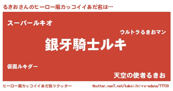 | 男性向けラノベタイトル風あだ名 | 『るきおの嫁は女の子じゃないと思った?』 |
