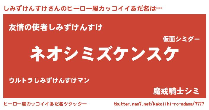 | 男性向けラノベタイトル風あだ名 | 『しみずけんすけという概念が存在しない退屈な世界 』 |