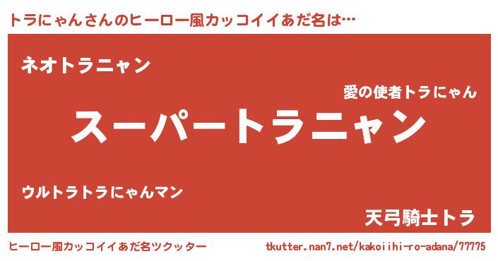 | 男性向けラノベタイトル風あだ名 | 『トラにゃんの憂鬱』 |