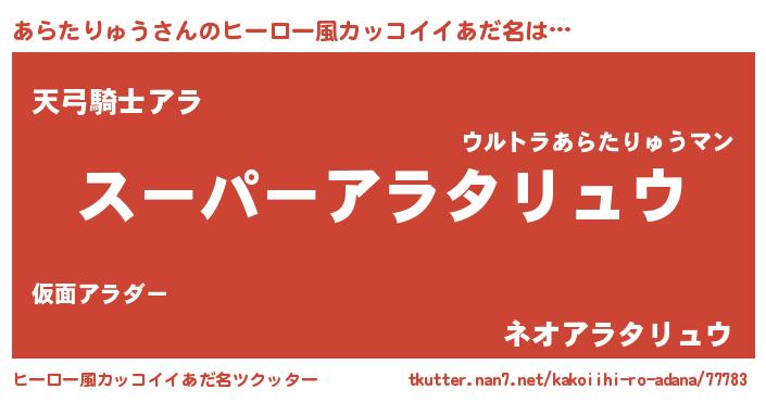 | 男性向けラノベタイトル風あだ名 | 『アラタリュウスレイヤー』 |