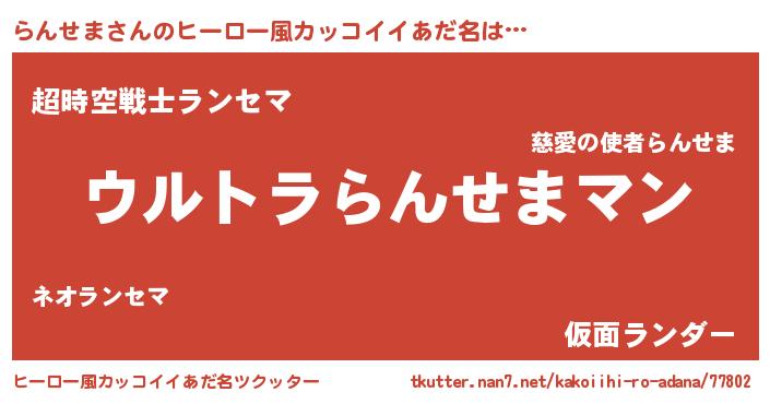 | 意味不明あだ名 | 『らんせまフォーエバー』『自称らんせま』 |