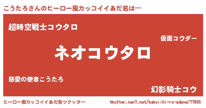 | 女子向けラノベタイトル風あだ名 | 『異世界で失敗しない100のこうたろ』 |