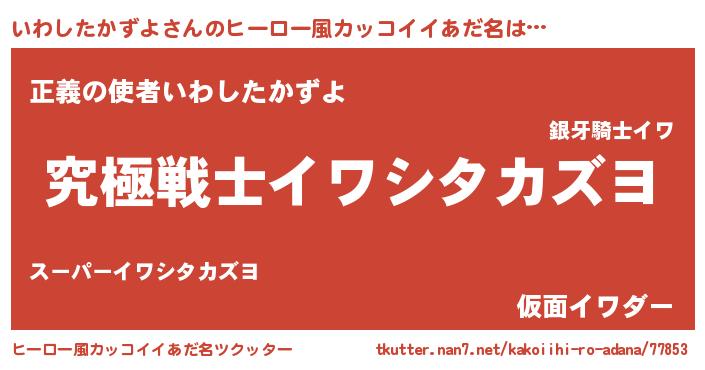 | 男性向けラノベタイトル風あだ名 | 『Re:いわしたかずよから始める異世界生活』 |