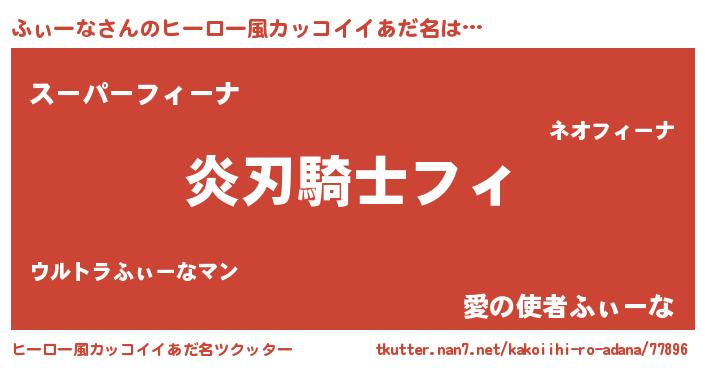 | 男性向けラノベタイトル風あだ名 | 『ふぃーなの嫁は女の子じゃないと思った?』 |