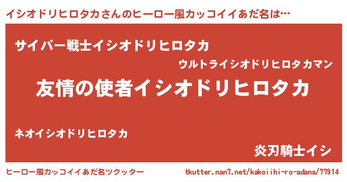 | 胡散臭い通販商品みたいなあだ名 | 『100人中100人が認めたイリジウム磁石…その名も「イシオドリヒロタカ」』 |