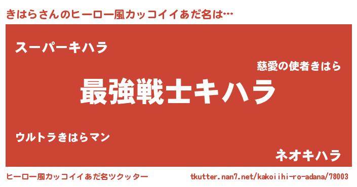| 男性向けラノベタイトル風あだ名 | 『Re:きはらから始める異世界生活』 |