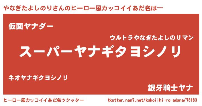 | 男性向けラノベタイトル風あだ名 | 『ヤナギタヨシノリスレイヤー』 |