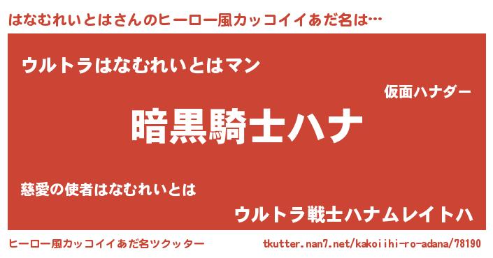 | ポケモン風あだ名 | 『ヒハナムレイトハ』『メロハッナ』 |