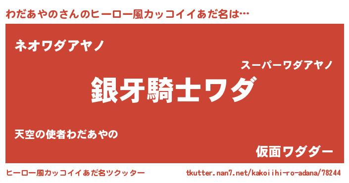 | ポケモン風あだ名 | 『ヒワダアヤノ』『ワダゴンZ』 |