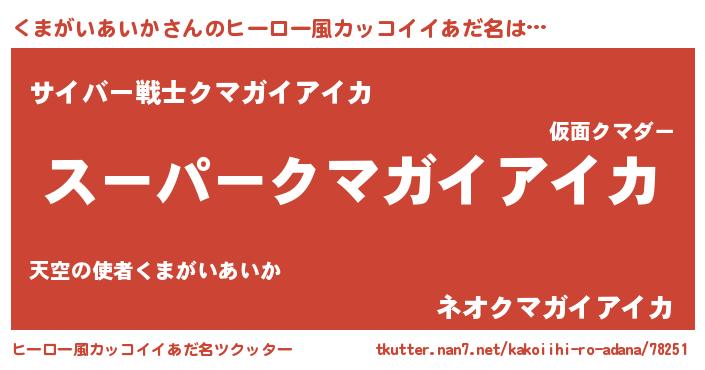 | 胡散臭い通販商品みたいなあだ名 | 『必ず成功するブレスレット…その名も「くまがいあいか」』 |
