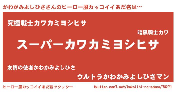 | 胡散臭い通販商品みたいなあだ名 | 『億万長者になれる霊験あらたかなお札…その名も「かわかみよしひさ」』 |