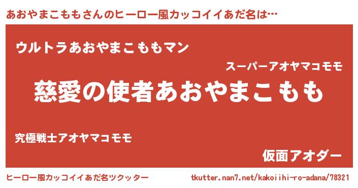 | 女子向けラノベタイトル風あだ名 | 『あおやまこもも恋絵巻』 |