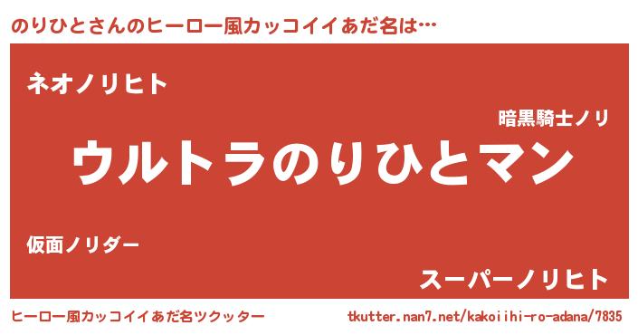 | 男性向けラノベタイトル風あだ名 | 『うちの娘の為ならば、俺はもしかしたらのりひとも倒せるかもしれない。』 |