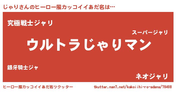 | 意味不明あだ名 | 『じゃりフォーエバー』『自称じゃり』 |