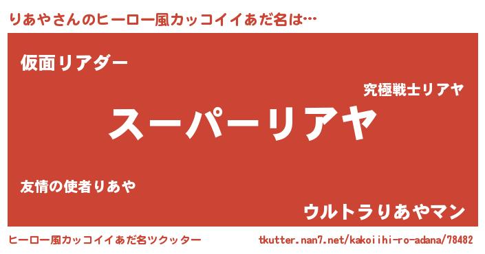 | 恥ずかしいあだ名 | 『プリティーりあや』『りあっちょ』 |