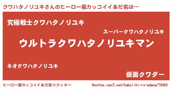 | 欧米人風あだ名 | 『クワハタノリユキクリステル』 |