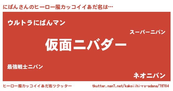 | 男性向けラノベタイトル風あだ名 | 『この素晴らしい世界ににばんを!』 |