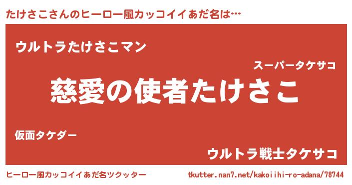 | 男性向けラノベタイトル風あだ名 | 『ノーゲーム・ノータケサコ』 |