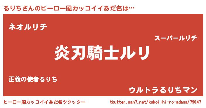| ポケモン風あだ名 | 『ルリキング』『ヒルリチ』 |