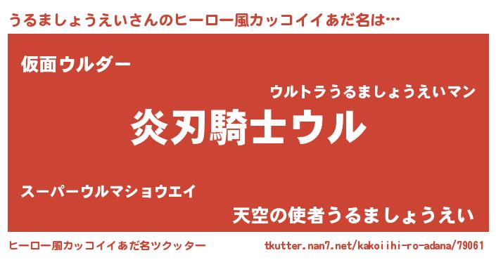 | 男性向けラノベタイトル風あだ名 | 『うちのうるましょうえいが世界を掌握している!』 |