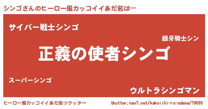 | 男性向けラノベタイトル風あだ名 | 『シンゴスレイヤー』 |