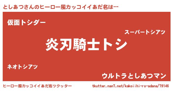 | 男性向けラノベタイトル風あだ名 | 『としあつの嫁は女の子じゃないと思った?』 |