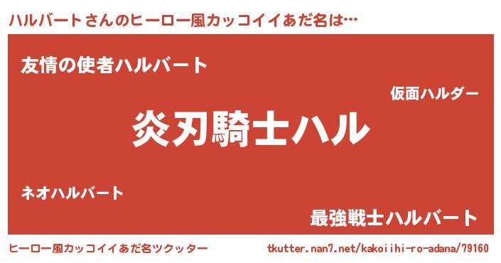 | 男性向けラノベタイトル風あだ名 | 『ハルバートの嫁は女の子じゃないと思った?』 |