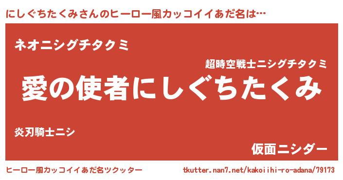 | 男性向けラノベタイトル風あだ名 | 『はたらくにしぐちたくみさま!』 |