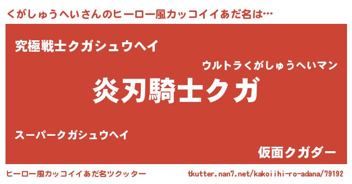 | 胡散臭い通販商品みたいなあだ名 | 『全米が絶賛したサプリメント…その名も「くがしゅうへい」』 |