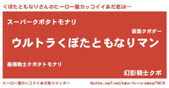 | 女子向けラノベタイトル風あだ名 | 『くぼたともなりの玉の輿計画!』 |