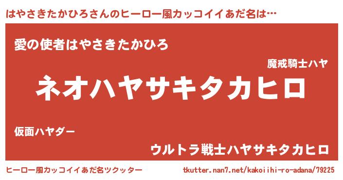 | ヘコむあだ名 | 『はやさきたかひろ(遠い目)』『はやっちょ』 |