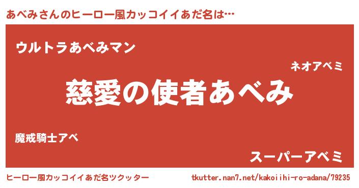| 男性向けラノベタイトル風あだ名 | 『うちのあべみが世界を掌握している!』 |