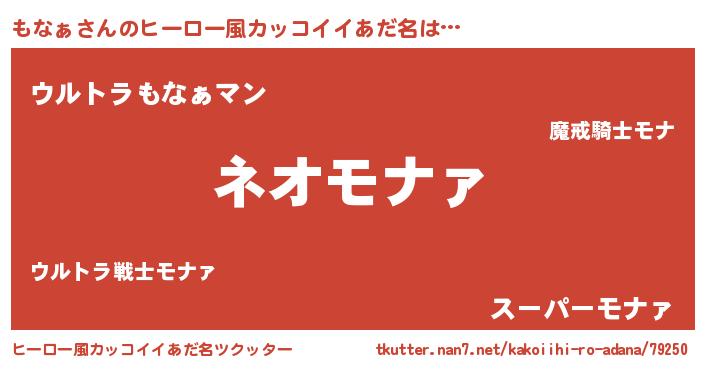 | 胡散臭い通販商品みたいなあだ名 | 『来世でも幸せになれる水素水…その名も「もなぁ」』 |