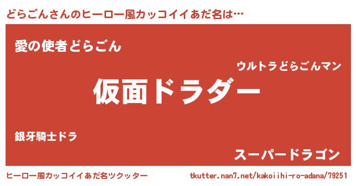 | 男性向けラノベタイトル風あだ名 | 『この素晴らしい世界にどらごんを!』 |