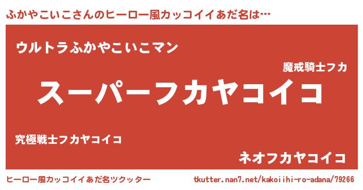 | 男性向けラノベタイトル風あだ名 | 『フカヤコイコアートオンライン』 |