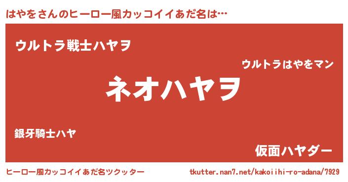 | 意味不明あだ名 | 『永久保存はやを』『自称はやを』 |