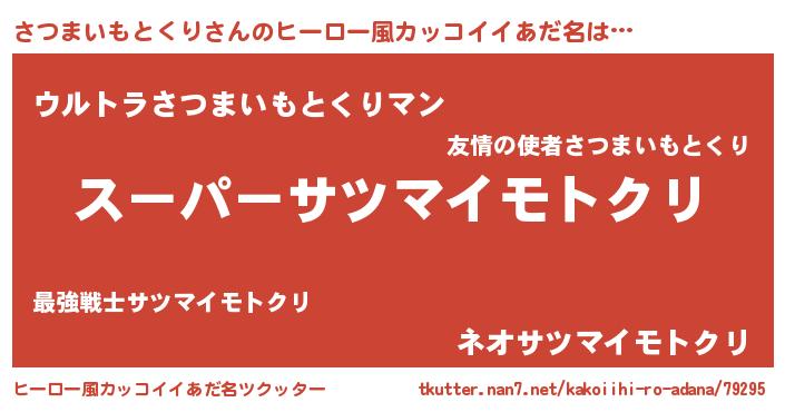 | 男性向けラノベタイトル風あだ名 | 『サツマイモトクリスレイヤー』 |