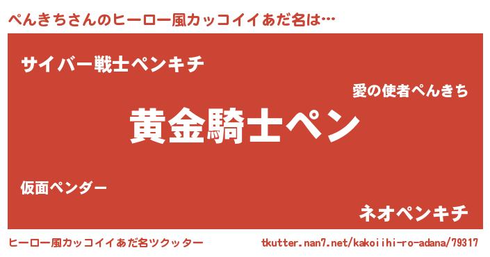 | 男性向けラノベタイトル風あだ名 | 『ダンジョンにぺんきちを求めるのは間違っているだろうか』 |