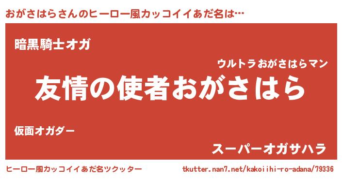 | 男性向けラノベタイトル風あだ名 | 『転生したらおがさはらだった件』 |