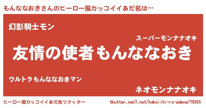 | 男性向けラノベタイトル風あだ名 | 『おまえをオタクにしてやるから、俺をもんななおきにしてくれ! 』 |