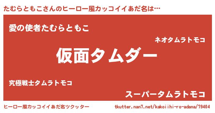 | 男性向けラノベタイトル風あだ名 | 『この素晴らしい世界にたむらともこを!』 |
