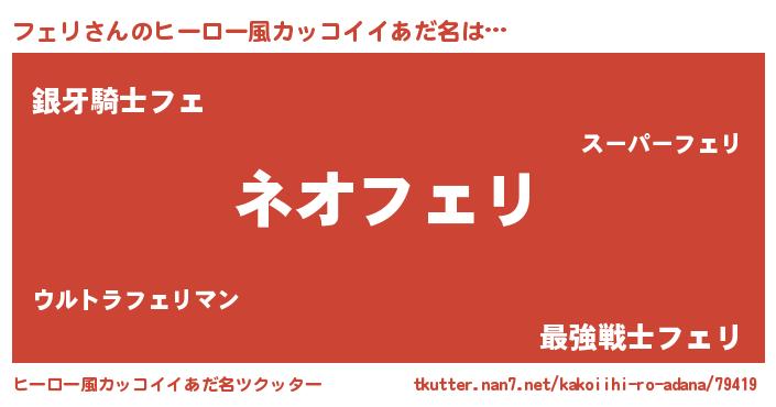 | 意味不明あだ名 | 『永久保存フェリ』『自称フェリ』 |