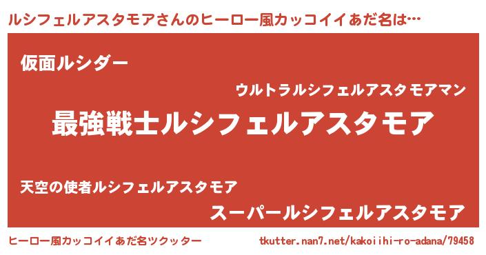 ルシフェルアスタモアさんのヒーロー風カッコイイあだ名をツクッター!