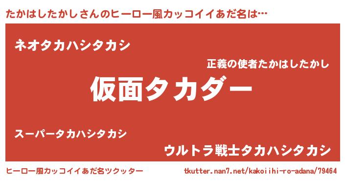 | 男性向けラノベタイトル風あだ名 | 『魔弾の王とたかはしたかし』 |
