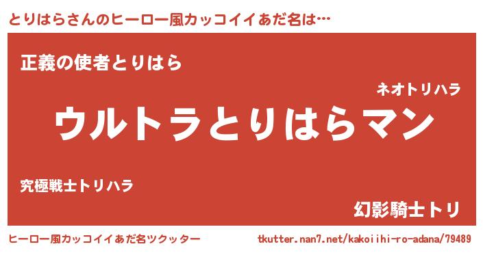 | 男性向けラノベタイトル風あだ名 | 『とりはら~年齢イコール彼女いない歴の魔法使い~』 |