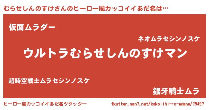 | 男性向けラノベタイトル風あだ名 | 『やはりむらせしんのすけの青春ラブコメはまちがっている 』 |