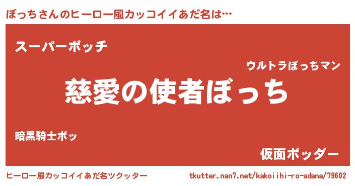 | 男性向けラノベタイトル風あだ名 | 『ノーゲーム・ノーボッチ』 |